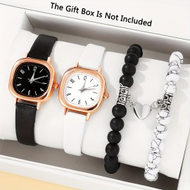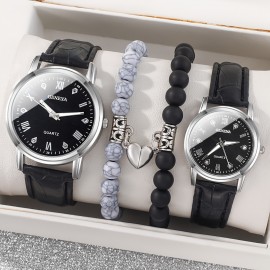 4pcs/set Fashion Unisex Silicone Strap Quartz Watch And Couple Love Heart Stainless Steel Bracelet Set
